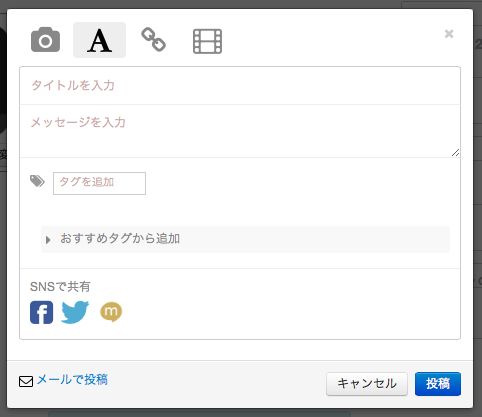 自分のFacebook/Twitter/mixiアカウントに同時投稿も可能です。